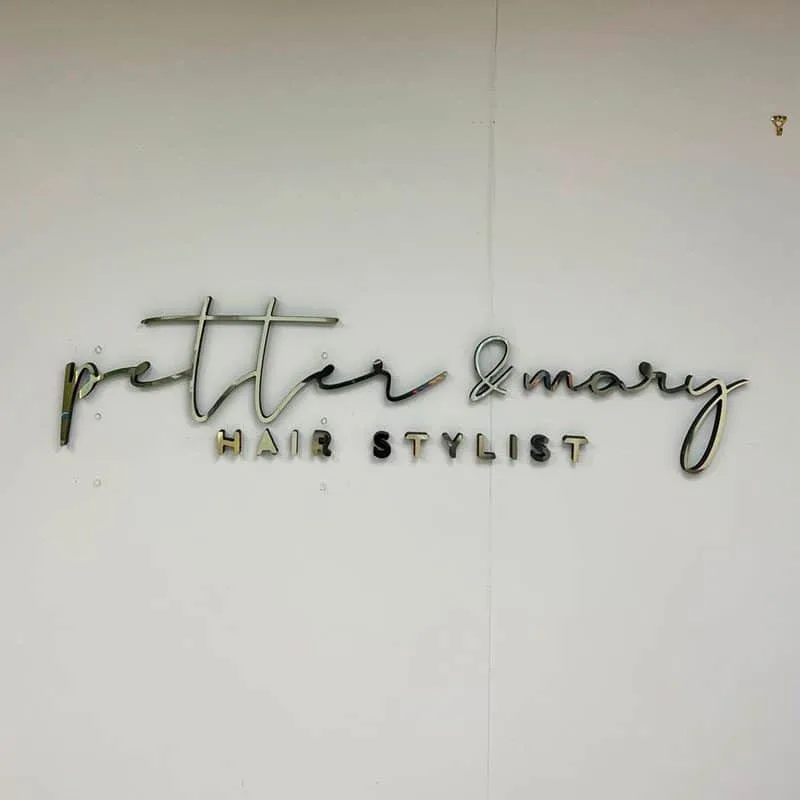 - Acrylic, metal, or PVC lettering
